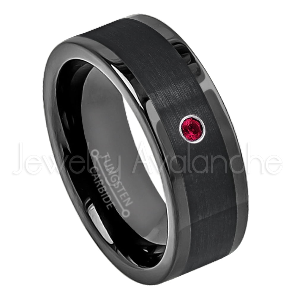 8mm Pipe Cut Black Tungsten Carbide Wedding Ring 0 07ct Ruby Tungsten Mens Wedding Band Custom Made Birthstone Ring Walmart Com